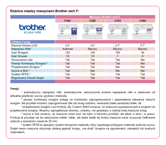 | PORÓWNANIE FUNKCJI MASZYN DO SZYCIA BROTHER |