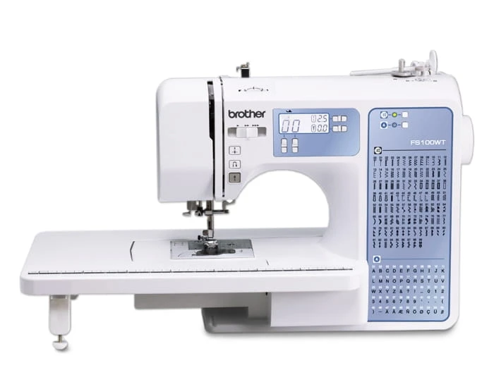 Brother FS100WT to doskonale wyposażona maszyna do szycia. Zaspokoi oczekiwania osób zaawansowanych w szyciu, ale będzie dobra również dla początkujących. Maszyna ma wbudowanych 100 ściegów, z czego aż 8 rodzajów automatycznego obszycia dziurki i funkcję haftowania liter. W zestawie maszyna posiada stolik powiększający pole pracy, który przyda się osobom zajmujących się pikowaniem albo szyciem innych dużych projektów. Czytelny wyświetlacz LCD informuje o szerokości i długości szwów, o wybranym wzorze oraz o ewentualnym rodzaju błędu. Maszyna ma możliwość pozycjonowania igły, wbudowany regulator prędkości, przycisk szycia wstecz a przycisk start/stop umożliwiający szycie bez pomocy pedału. Ta maszyna może być spełnieniem marzeń dla wszystkich krawców i projektantów.