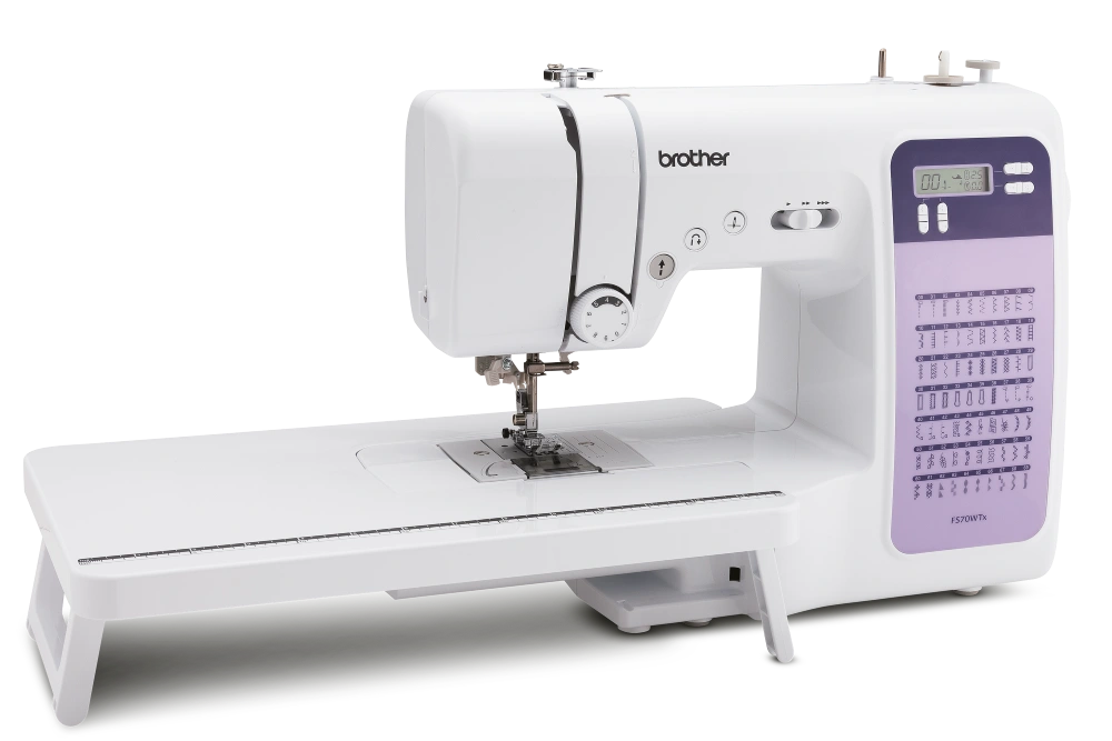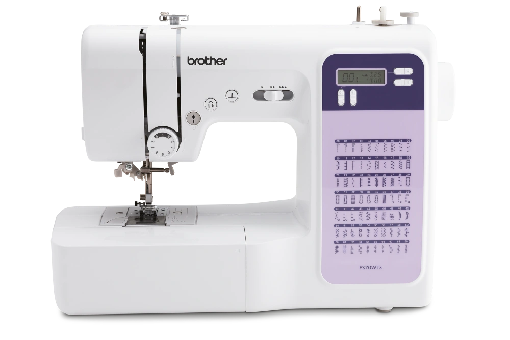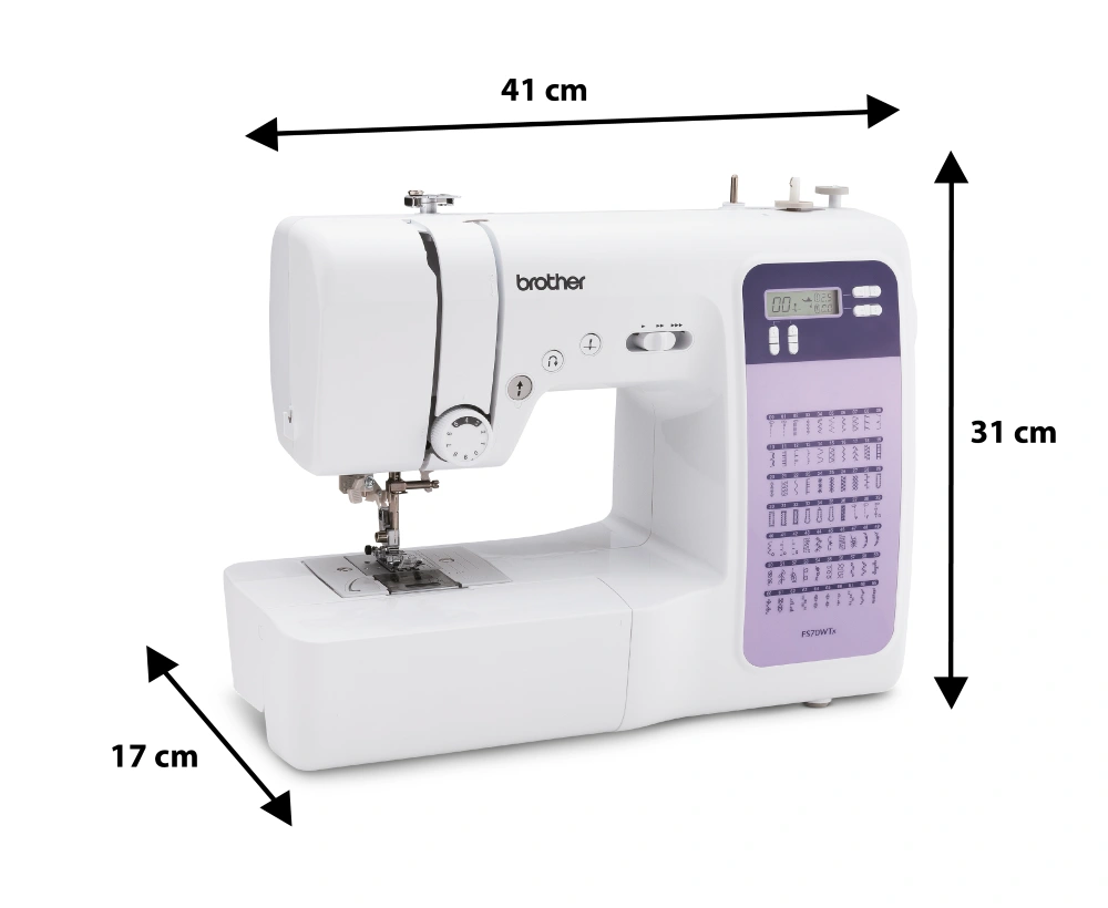 Brother FS70WTX to doskonale wyposażona maszyna do szycia. Zaspokoi oczekiwania osób zaawansowanych w szyciu, ale będzie dobra również dla początkujących. Maszyna ma wbudowanych 70 ściegów, z czego aż 7 rodzajów automatycznego obszycia dziurek. Duży wybór ściegów prostych, elastycznych i dekoracyjnych. Maszyna osiąga prędkość 850 wkłuć na minutę, co jest bardzo dobrym wynikiem i zapewnia płynną pracę. W zestawie maszyna posiada duży stolik powiększający pole pracy, który przyda się osobom zajmujących się pikowaniem albo szyciem innych dużych projektów.