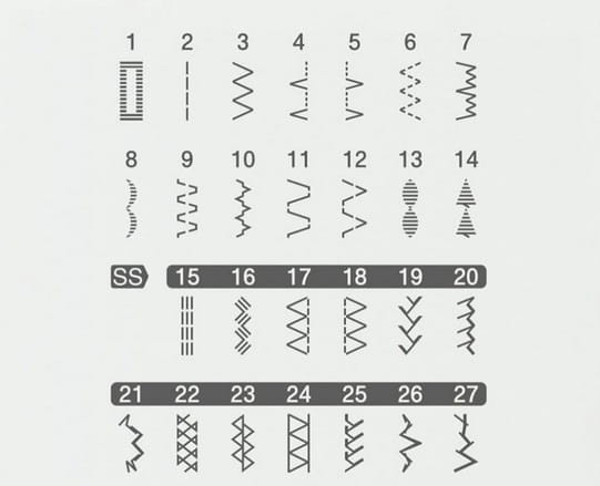 - 27 wbudowanych ściegów
