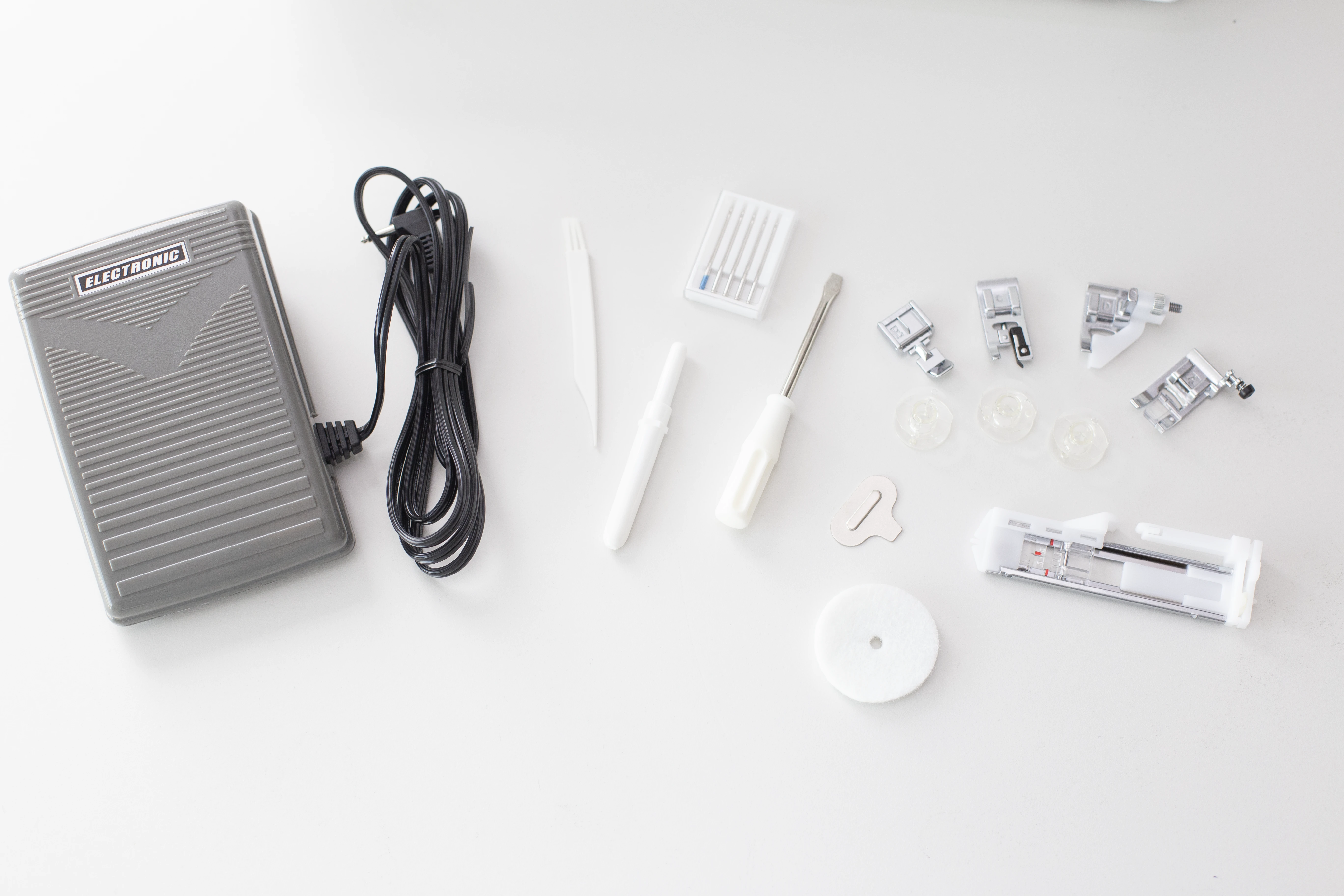 - stopki: uniwersalna, do dziurek, stopka do wszywania zamków błyskawicznych, do ściegu krytego i owerlokowa