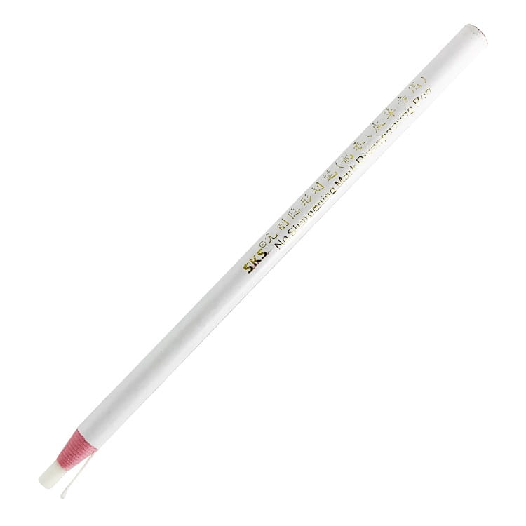Kredka krawiecka biała. Najlepiej widoczna na ciemnych materiałach. Znika pod wpływem wysokiej temperatury. Wystarczy przeprasować żelazkiem. Kredka nie wymaga ostrzenia za pomocą temperówki ani noża. Osłona wkładu piszącego wykonana jest z taśmy, którą odwijamy w miarę zużycia wkładu.