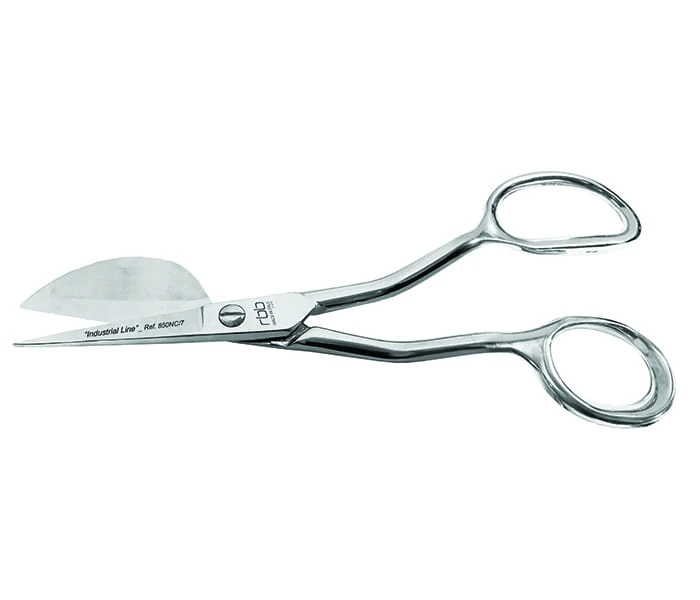 Dolne ostrze nożyczek ma kształt płetwy. Konstrukcja nożyczek chroni cięty materiał przed uszkodzeniem przez dolne ostrze. Świetnie nadają się do wycinania aplikacji przyszytych do materiału bazowego bez ryzyka uszkodzenia materiału bazowego.