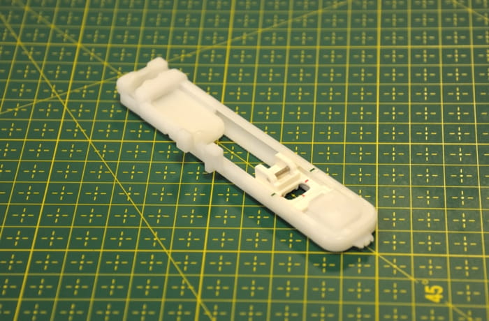 Stopka dostosowuje automatycznie wielkość dziurki do wielkości guzika. Podczas obszywania przesuwa się wraz z tkaniną dając dziurkę równo obszytą zygzakiem i symetryczną.